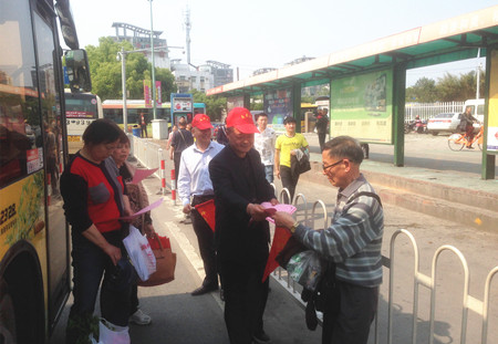 根據(jù)我市“迎接G20人人講文明——做文明有禮嘉興人”活動(dòng)要求,為進(jìn)一步強(qiáng)化全員安全營運(yùn)、文明服務(wù)意識(shí),4月29日,公交公司開展“倡導(dǎo)安全乘車、文明禮讓”學(xué)雷鋒黨員志愿者活動(dòng)。