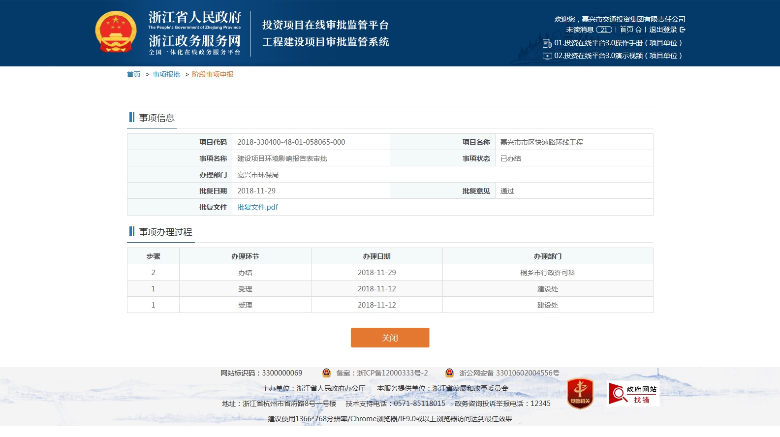 嘉興市市區(qū)快速路環(huán)線工程一期建設(shè)項(xiàng)目環(huán)境影響報告表審批